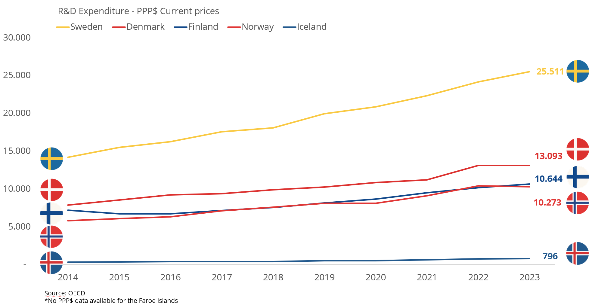 While all Nordic countries have seen steady growth in the last few years, Sweden’s investments in R&D continue to grow at a faster rate than the rest, reinforcing its position as a frontrunner.